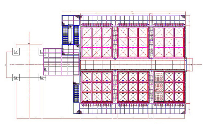 電爐除塵器采用離線清灰,離線清灰是避免粉塵二次吸附的手段,可提高清灰效率。其中,除塵器凈化倉設(shè)計成小單室,清灰系統(tǒng)運行時,一室參與離線清灰,閉掉一個室的過濾面積對整個系統(tǒng)基本無影響??墒钩龎m器長期穩(wěn)定運行。