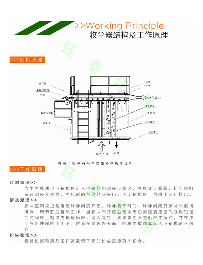 YT24倉(cāng)頂除塵器主要應(yīng)用于筒倉(cāng)頂部進(jìn)行收塵處理,是根據(jù)水泥、粉煤灰、石灰等各種粉狀物質(zhì)的粒徑,設(shè)計(jì)其除塵器濾袋的O通過(guò)直徑并考慮附著力作用給濾袋孔徑的影響,使之完全可以滿足各類粉狀物質(zhì)的過(guò)濾要求。水泥罐倉(cāng)頂除塵器