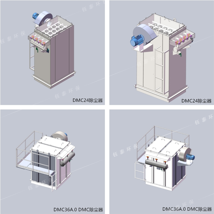 兩大系列十二個規(guī)格倉頂除塵器,每種規(guī)格又可分為標(biāo)配灰斗A型和開式法蘭B型(無灰斗,適用于水泥罐頂部)。