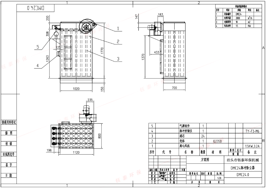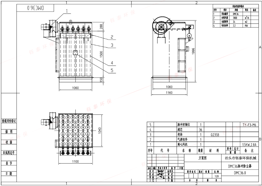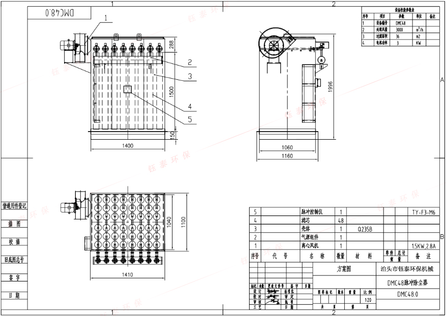 設(shè)備型號 處理風(fēng)量(m³/h ) 濾袋數(shù)量(只) 過濾面積(㎡) 電機功率(Kw)