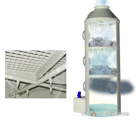 廢氣噴淋凈化塔的工作原理是將氣體中的污染物分離成無害物質(zhì),以達(dá)到凈化氣體的目的,屬于差動接觸逆流,塔體填料是氣液接觸的基本組成部分。進(jìn)入塔體的氣體進(jìn)入塔體后,氣體進(jìn)入填料層
