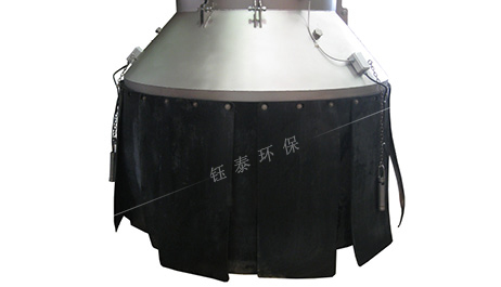 溜筒出口處的吸塵罩為多層結(jié)構(gòu),內(nèi)層為由皮帶膠組成的耐磨性能好、有一定相對(duì)硬度且具柔性的圍裙。皮帶膠圍裙主要用于緩解高速物料帶來的沖擊,緩沖高速氣流帶來的粉塵急速擴(kuò)散。吸塵罩的皮帶膠圍裙也起支撐作用,可以避免由于負(fù)壓作用,外層帆布裙被吸扁,碰到料位檢測(cè)裝置導(dǎo)致誤報(bào)信號(hào)或者在溜筒出料口干擾物料流動(dòng)。吸塵罩外層為雙重帆布圍裙,帆布裙的內(nèi)層長(zhǎng)度需比皮帶膠圍裙大,需完全罩住皮帶膠圍裙。帆布裙外層比內(nèi)層略大,需覆蓋住溜筒出口處的物料。雙重結(jié)構(gòu)主要用于控制粉塵外揚(yáng)及外部風(fēng)力作用將粉塵揚(yáng)起擴(kuò)散。整個(gè)吸塵罩在物料面和溜筒出口間構(gòu)成一個(gè)相對(duì)密閉的空間,防止粉塵外溢。